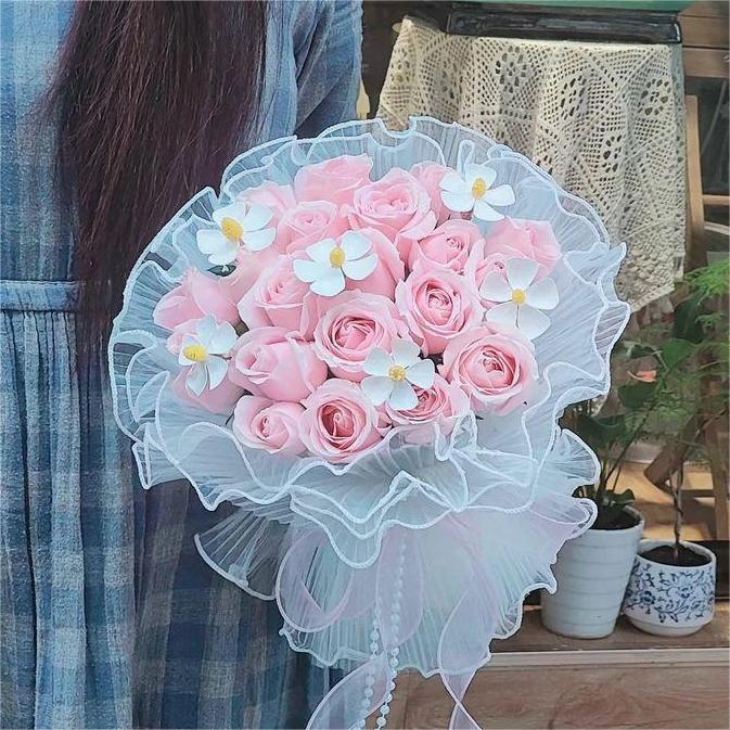 Bó Hoa Gói Giấy Hồng Trong Suốt
