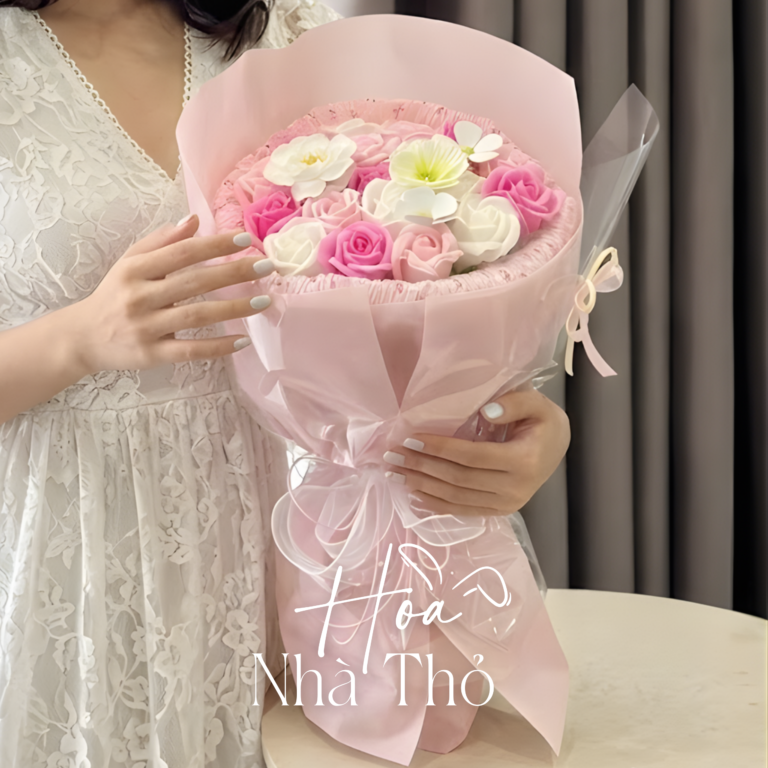Bó Hoa Gói Giấy Hồng Trong Suốt